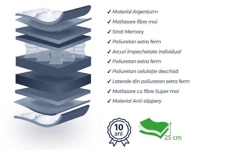 - Husă cu ioni de argint, detașabilă și lavabilă la 30 de grade